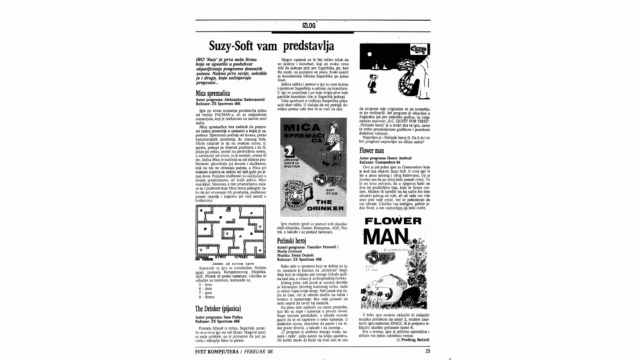 Suzy Soft published several video games and programs for ZX Spectrum, Commodore 64 and Orao by various Yugoslav developers.